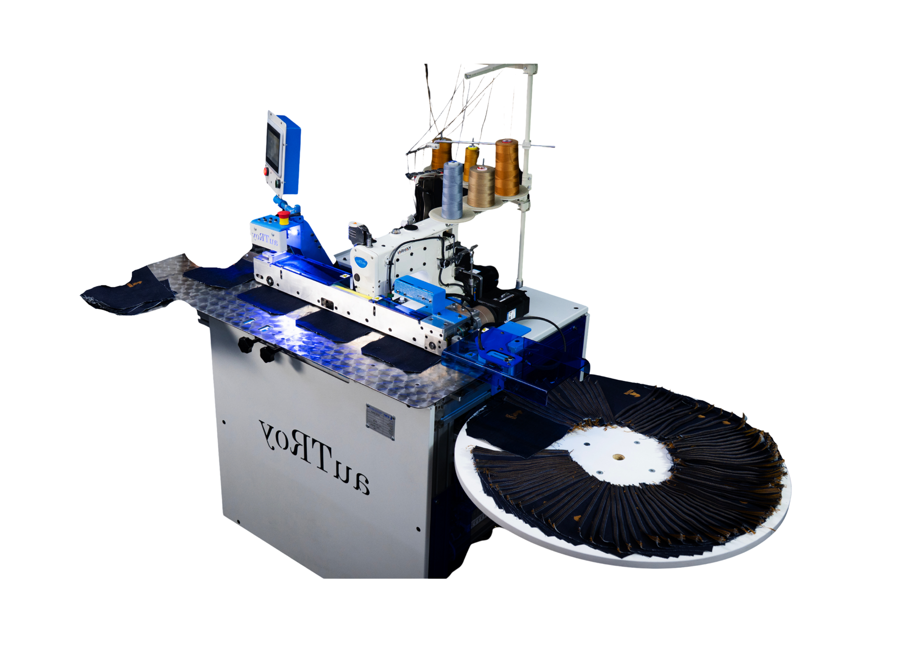 - Automatic thread trimmer and vacuum system for thread waste.