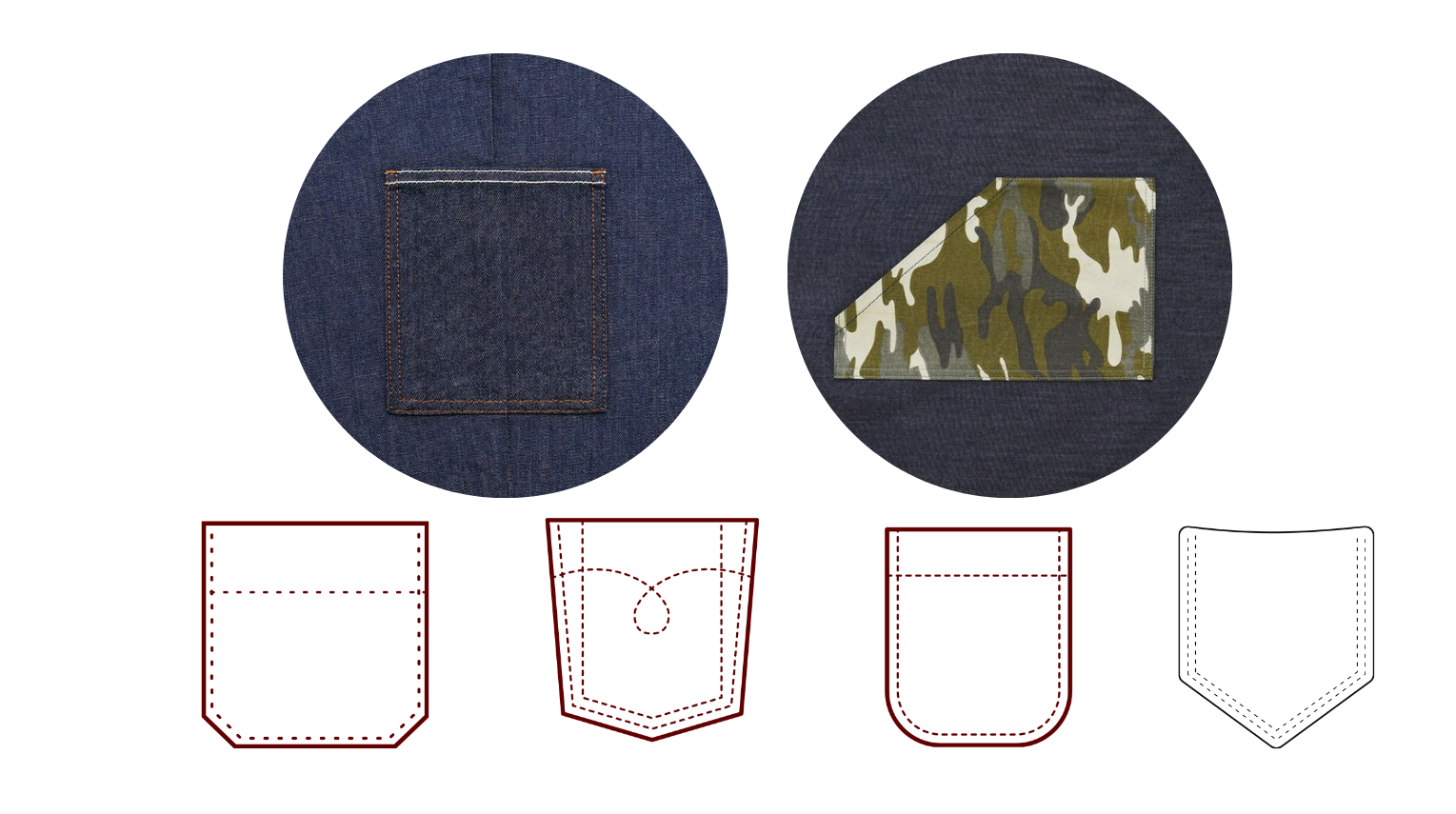 - Able to work any kind of fabrics. Jeans, shirts, knits, towel, gabardine or other kind of fabric pockets can be sewn. It is also possible to process striped and checked fabrics as per pattern directly at the sewing unit without any problems.